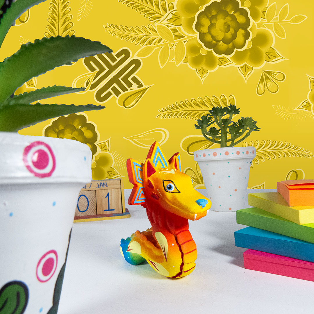 La serpiente emplumada es el movimiento creador y formador del universo, de la justicia, la verdad y la paz.Eres fuerte, amable, incansable, cualquier situación la superas y puedes llegar a ser una gran autoridad. Técnica Artesanal: alebrije de resina pintado a mano con pinturas acrílicas.